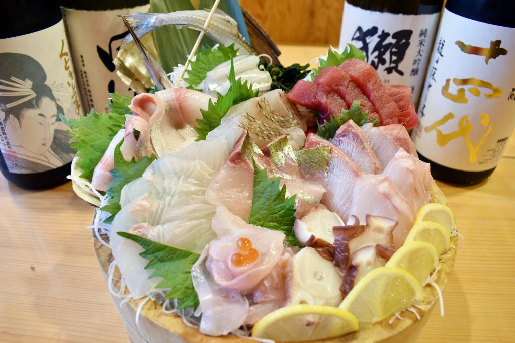 新鮮な魚をさばいて作る豪快な刺身の盛り合わせは、見て驚き食べて美味しい♪