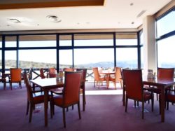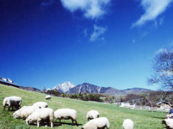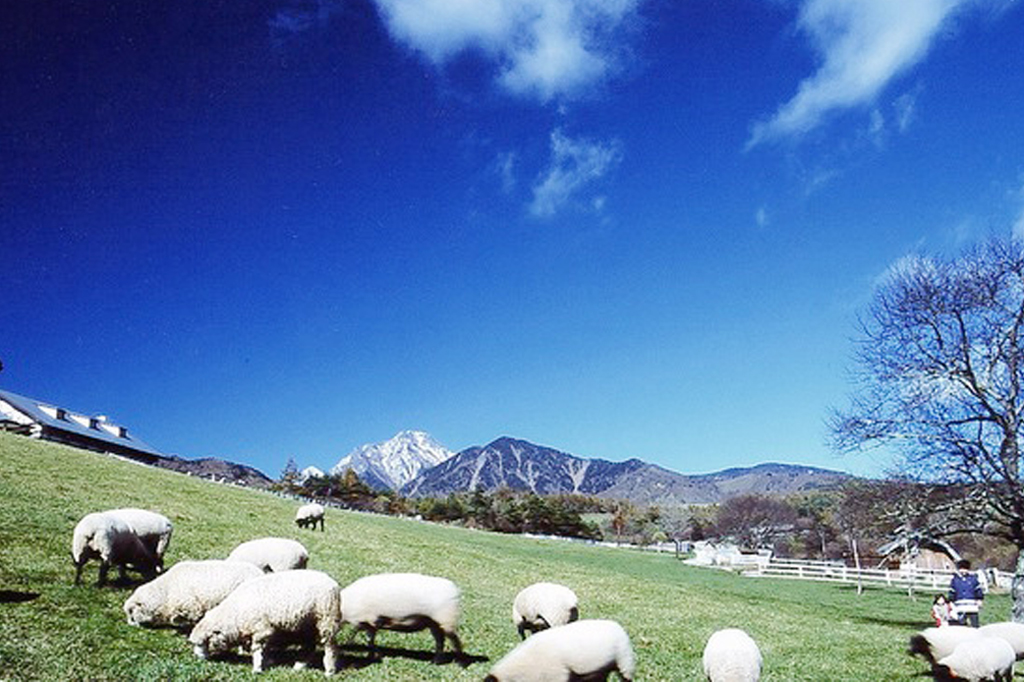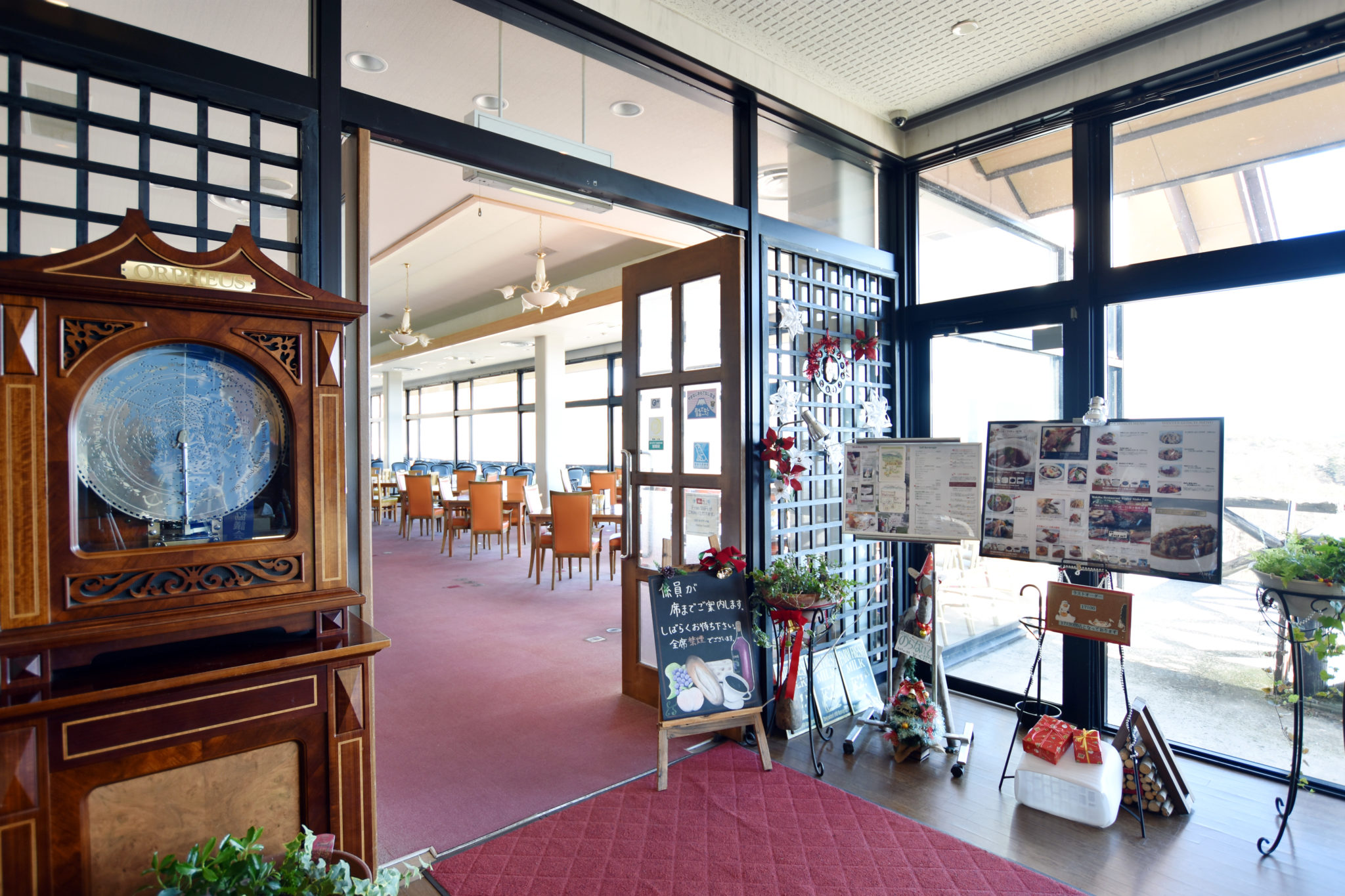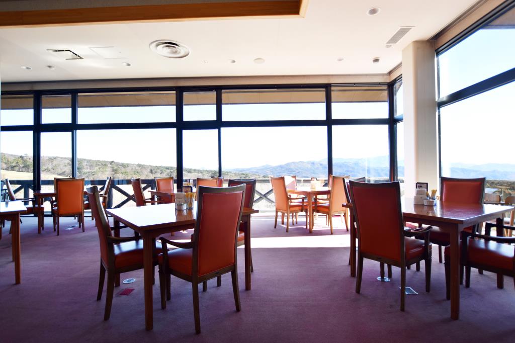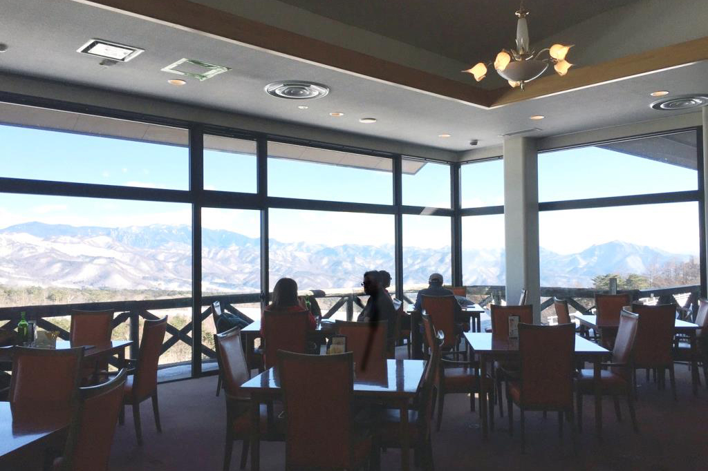 八ヶ岳の広大な牧草地と山々の大パノラマを望むまきばレストラン。
