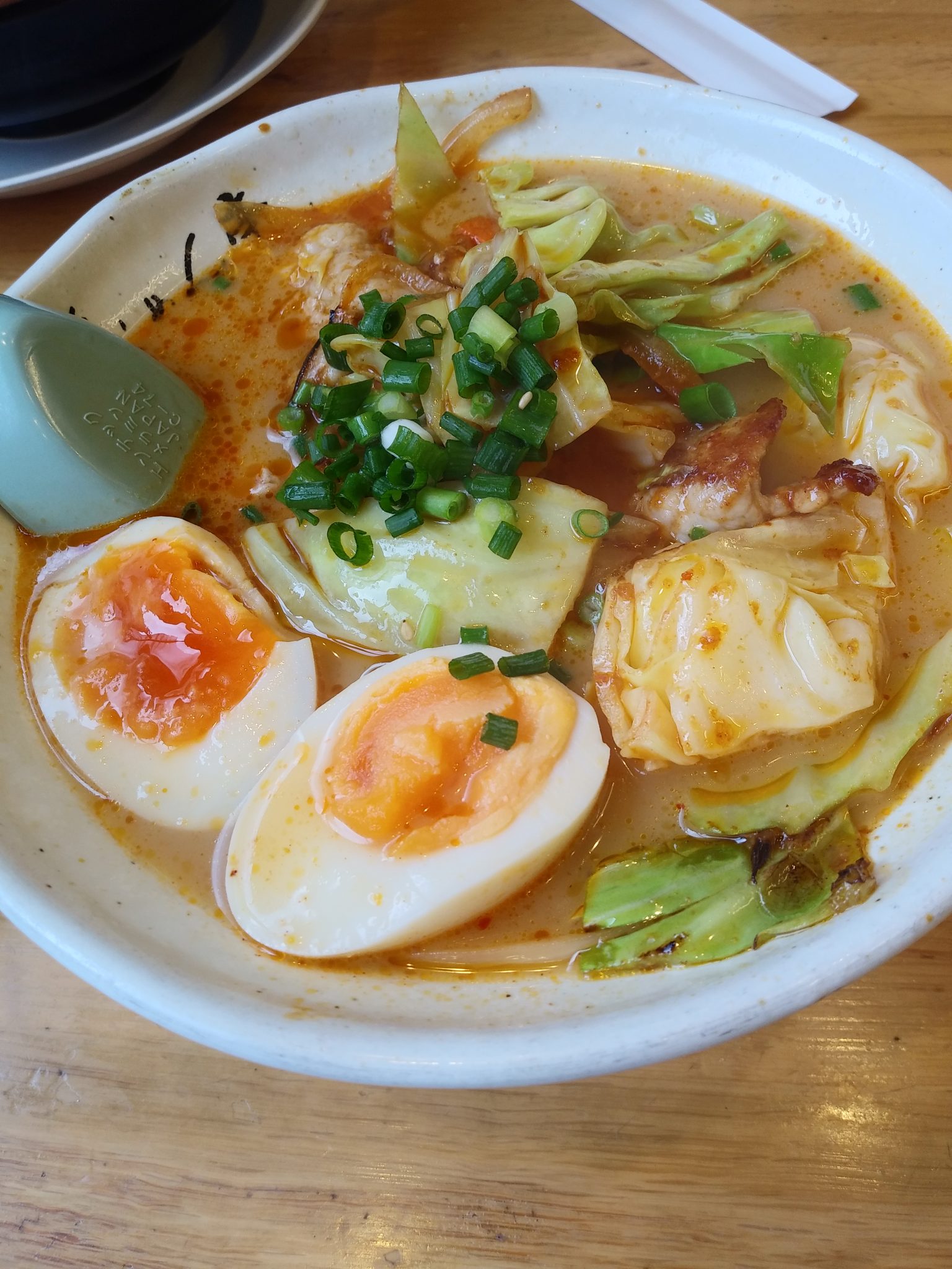 年末、ラーメン店が休みの所が多く、昼食難民になりかけていました。ちりめん亭は昼から通し営業だったので来店。ピリ辛の肉野菜ラーメンを頂きました。キャベツがたっぷり、豚肉も入っていました。ピリ辛スープが美味しくて身体が温まりました。年配で料理を作っている女性スタッフの接客はいまいちでしたが、年配でホールの男性スタッフは感じ良かったです。