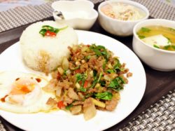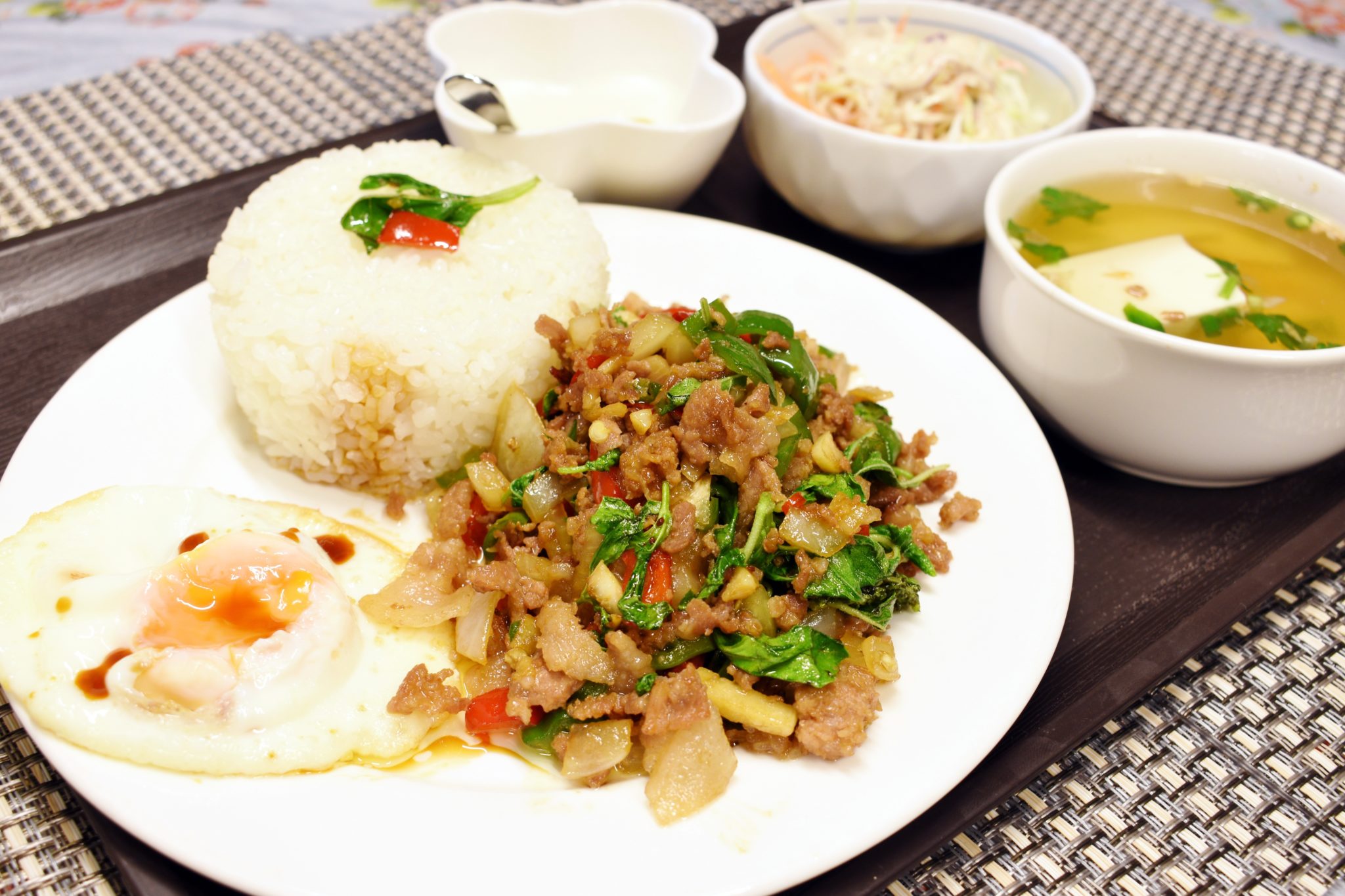 ランチセットはガパオライスやトムヤムクンなど7種類から選べ、サラダとデザート付きでお得!