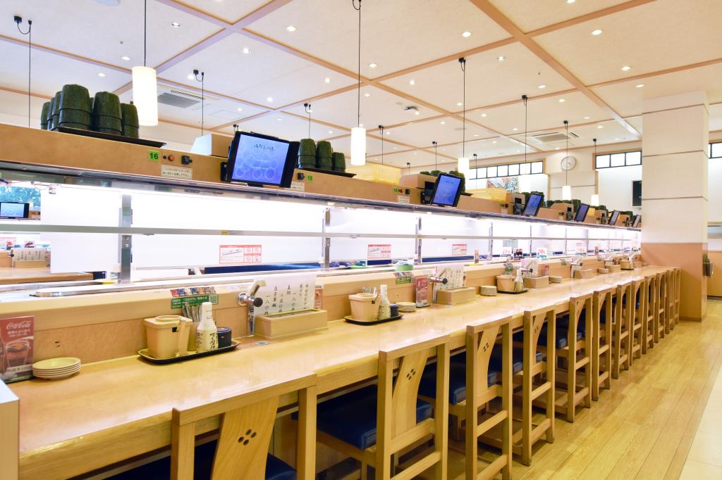 まぐろ・サーモンなど人気のネタから厳選された季節のネタまで豊富に取り揃えている回転寿司店。