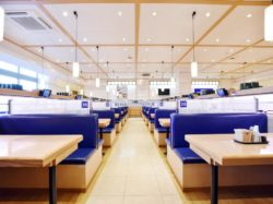 ファミリーから女性お一人でも気軽に利用できる明るく開放的な店内。