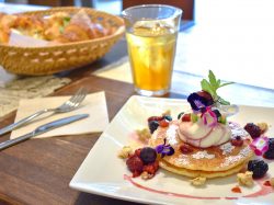 カフェ店内では、水と空気にこだわったパンと地元産食材を使用した料理を楽しめる。