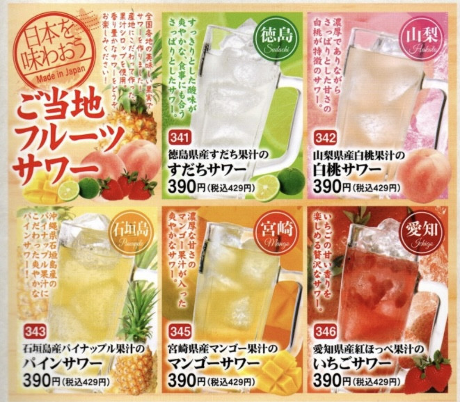 • ≪ご当地フルーツサワーより1杯サービス≫