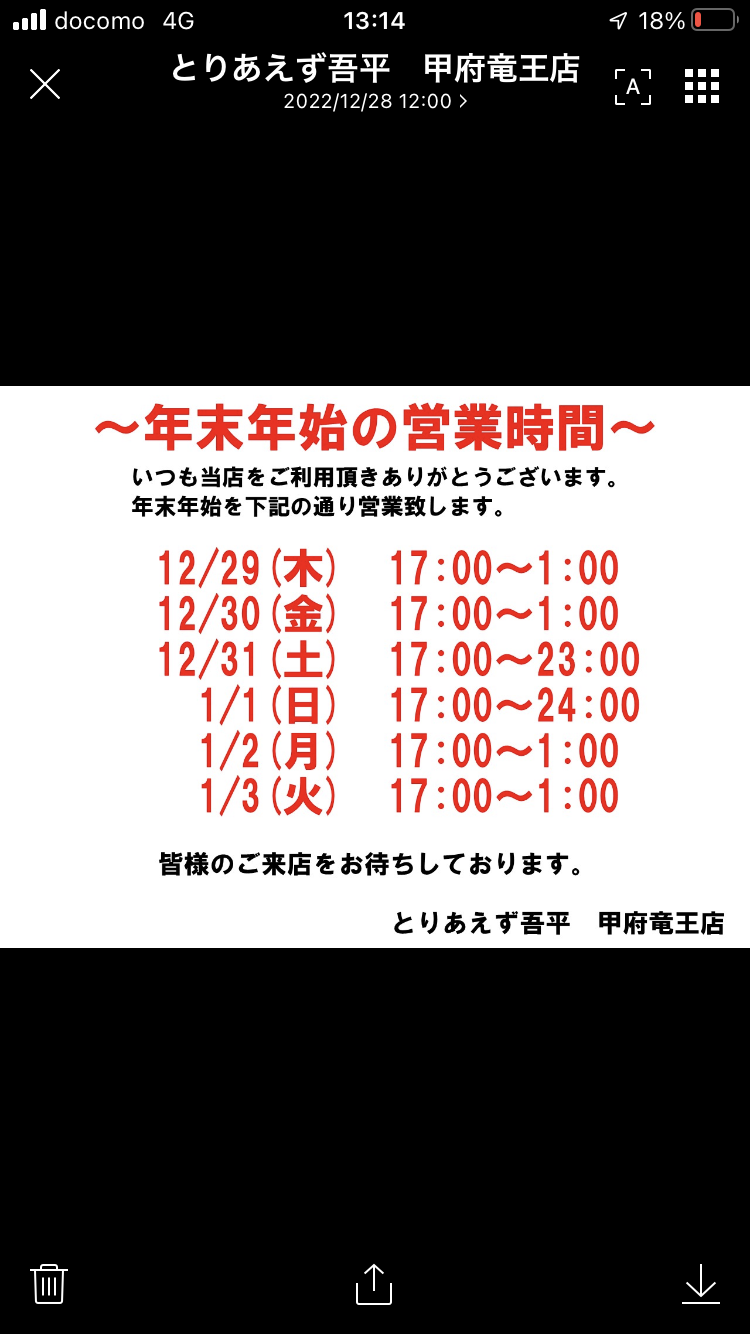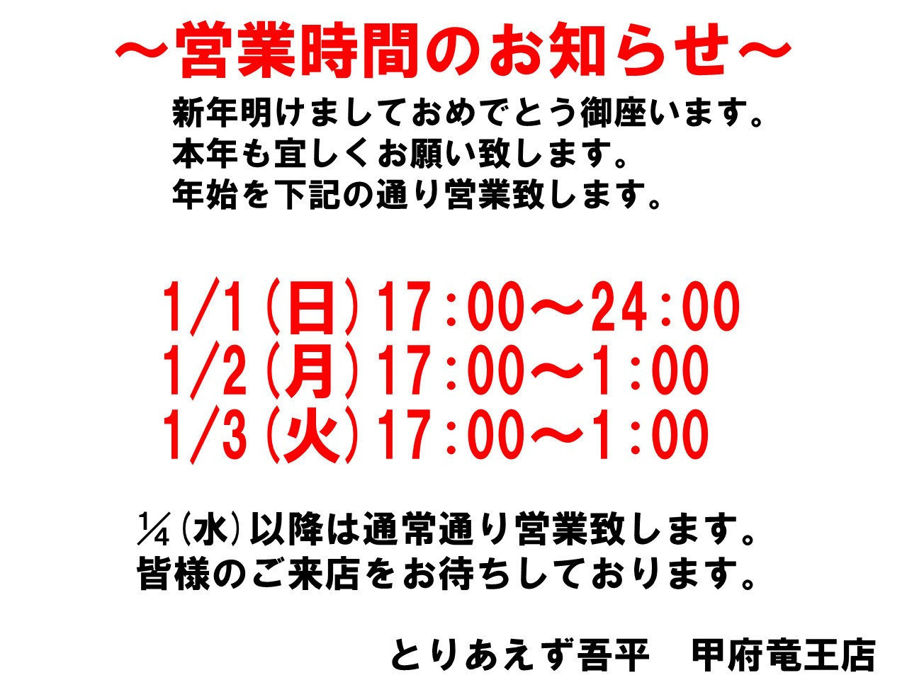 新年あけましておめでとうございます! とりあえず吾平 甲府竜王店です🎵 本年も宜しくお願い致します。お客様に楽しくご飲食頂けるよう頑張ります!年始も休まず営業致します! スタッフ一同...