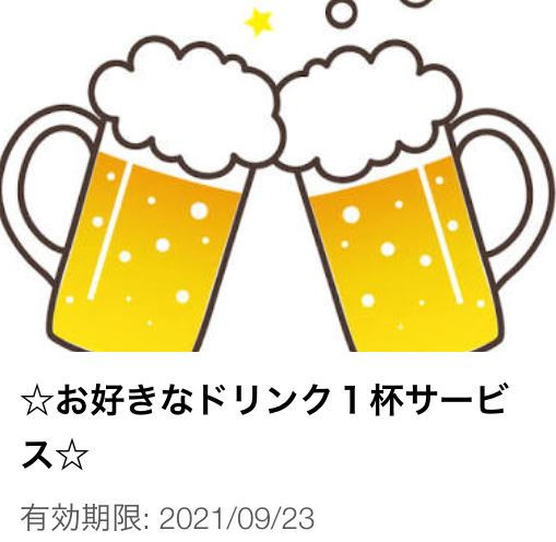 今回のクーポンは『お好きなドリンク1杯サービス』です