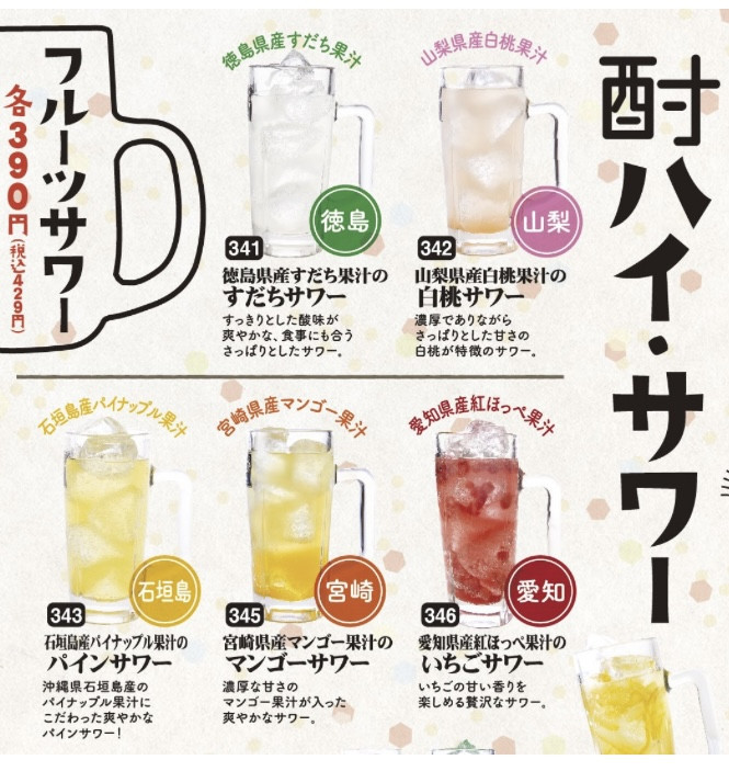 • ≪ご当地フルーツサワーより1杯サービス≫