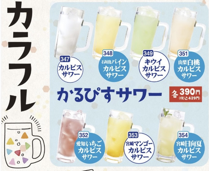 • ≪カラフルかるぴすサワーより1杯サービス≫