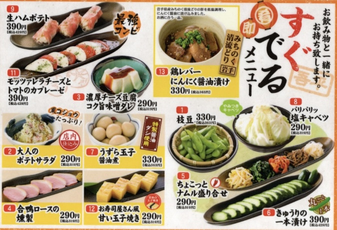 ≪すぐ出るメニューより1品サービス≫