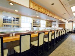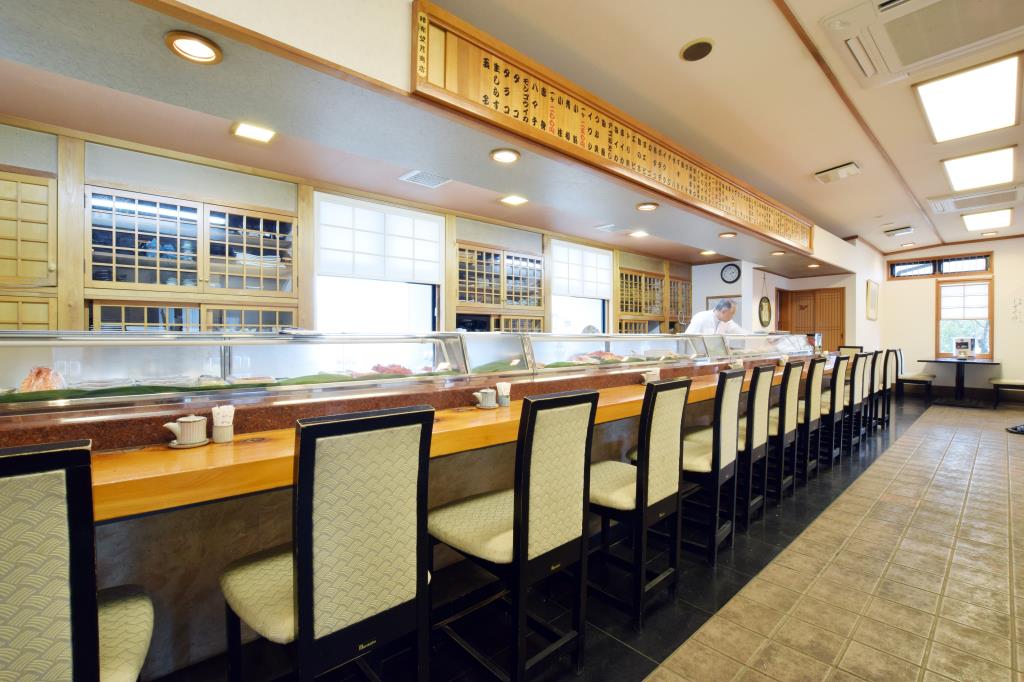 入ってすぐのカウンターでは熟練の職人がリズム良く寿司を握っている。ただカウンターでも明るくオープンな雰囲気なので女性一人でも入りやすい。