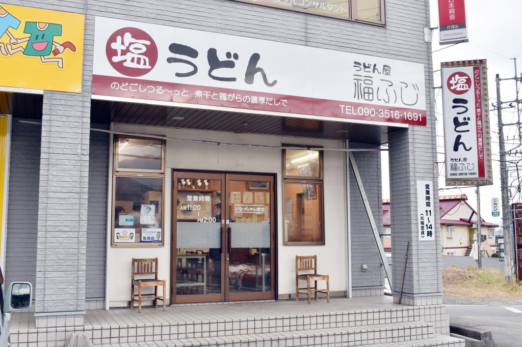 つるんっとしたもちもちの麺と濃厚な白だしを使用したうどんが自慢の福ふじ。