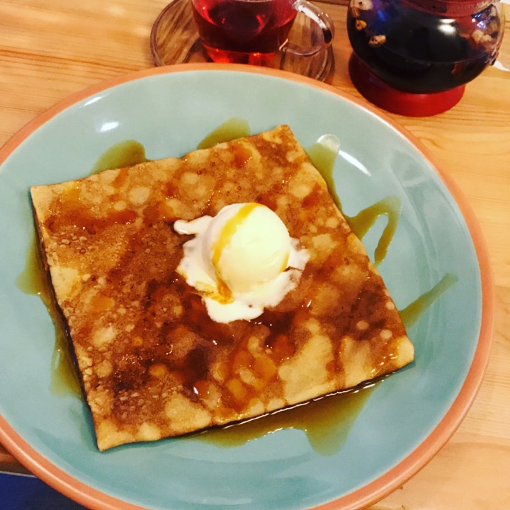 写真はリンゴのコンポートのクレープですが、バターとお砂糖のクレープも頂きました。