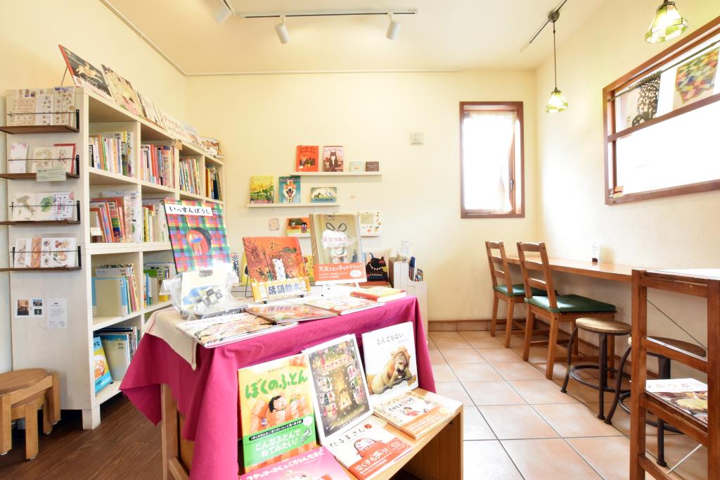 可愛らしいお店には素材にこだわったパンと、ずらりと並んだ絵本☆