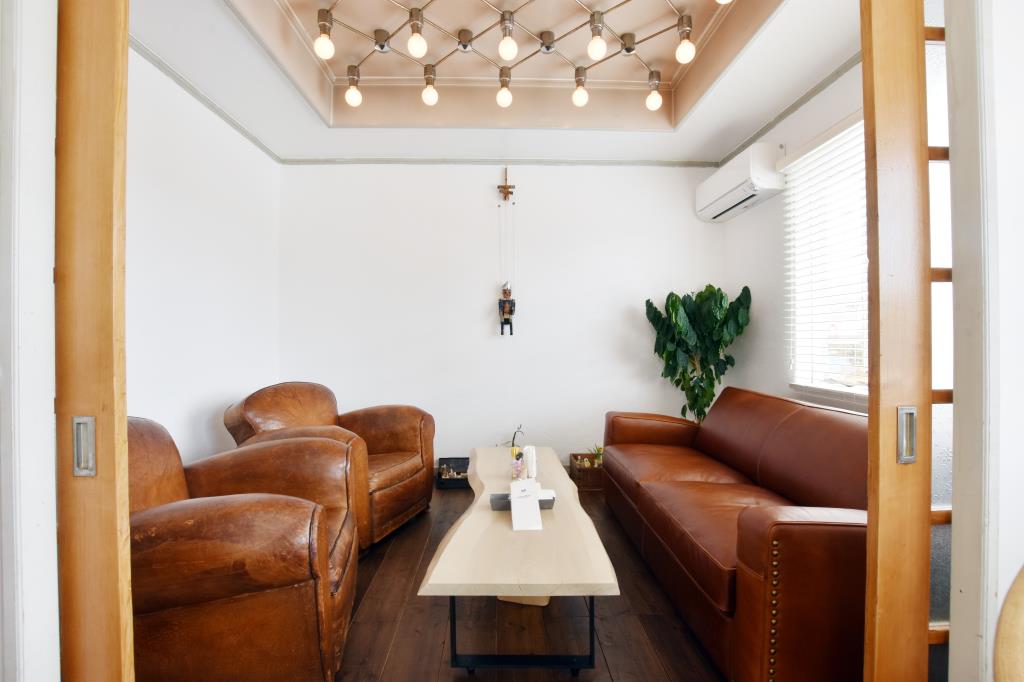 白い壁とアンティーク家具がマッチした雰囲気抜群の店内のインテリアは全てご主人のDIY。