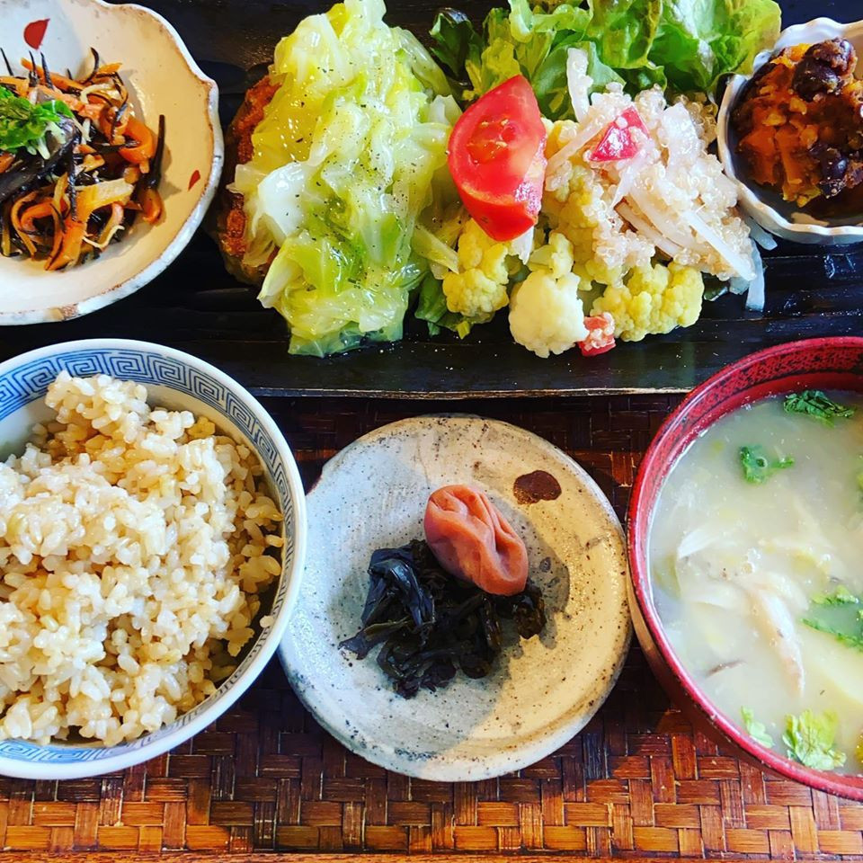 筍バーグ 新キャベツ本葛あん 三つ葉ひじき煮 カリフラワーキノアサラダ 小豆南瓜 新じゃがいもシチュー 本日はグルテンフリー お持ち帰りも承ります。 グルテンフリーのご希望も...