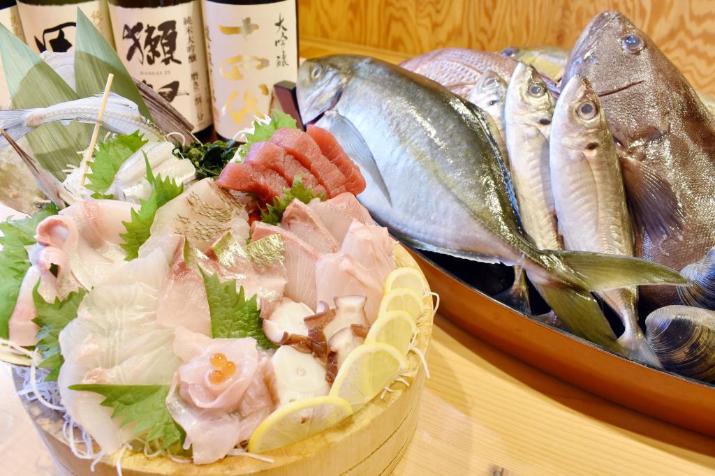 新鮮な魚をさばいて作る豪快な刺身の盛り合わせは、見て驚き食べて美味しい♪