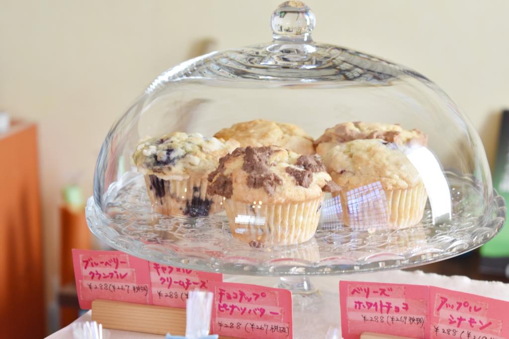 8café lazawalkラザウォーク甲斐双葉店の1F、手作りのタルトがずらっと並んだショーケースが目印のカフェ。店内は緑に囲... -