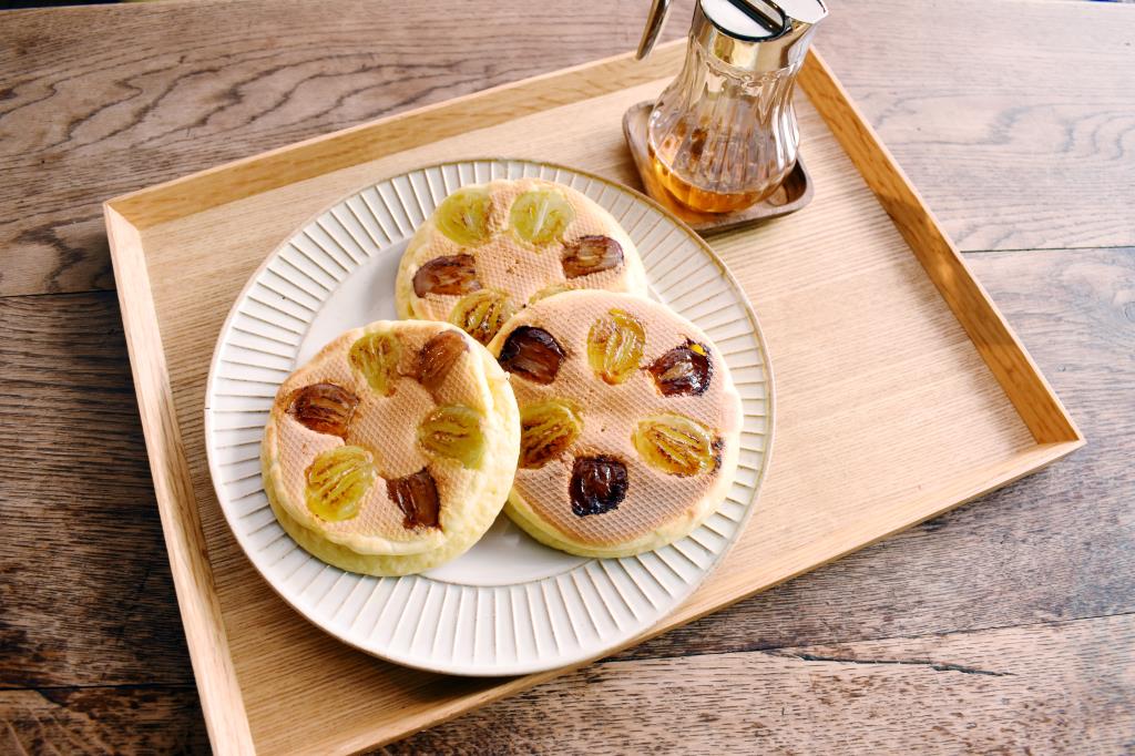 桃やぶどう、苺など四季に合わせた旬のフルーツをふんだんに使ったパフェやパンケーキを食べられるカフェ。