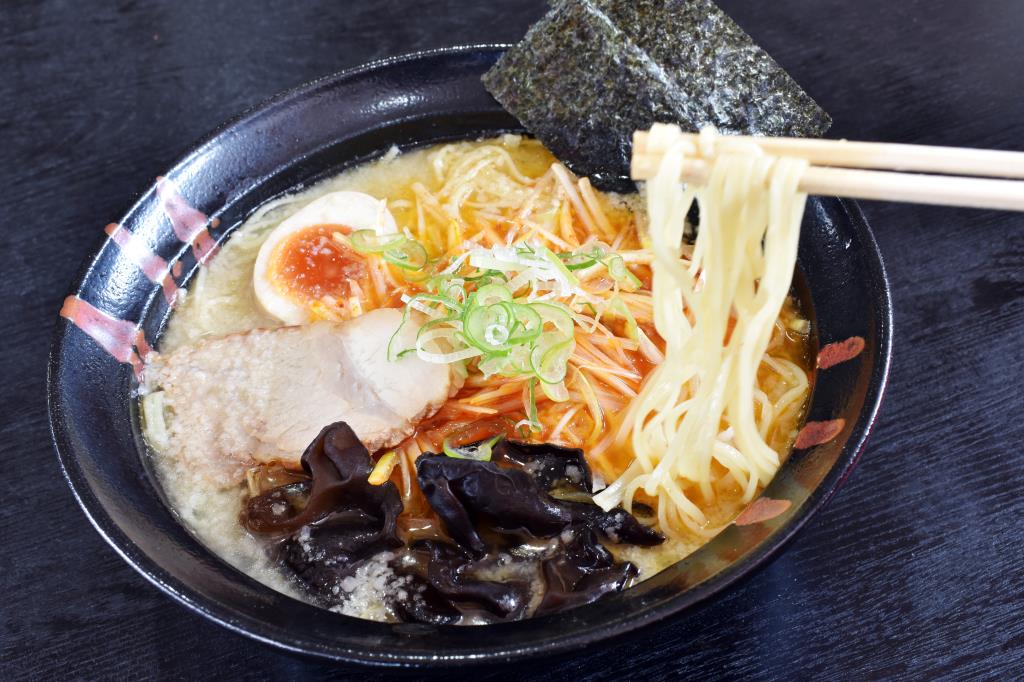 シルクパウダー(食べる絹)を練り込んだ麺は、つるんっとしたのどごしの良さと歯ごたえを楽しむことができ、更に美容効果も◎