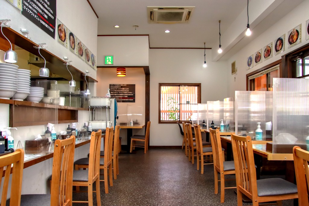 横濱家系 雷家甲府市酒折にあるラーメン店「雷家」。明るく清潔感のある店内にはカウンター、テーブルがありシーンにも合...