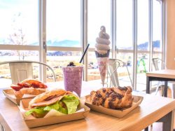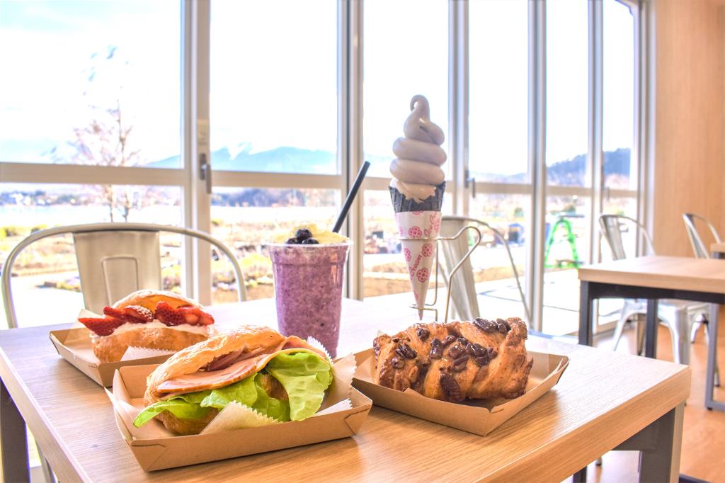 季節ごとに変わるフレーバーが人気のソフトクリームや、店内で焼き上げるクロワッサンのサンドウィッチ、地元の卵で作るなめらかプリン、大石産のブルーベリーをふんだんに使用したフローズンドリンクなどなど、地産地消をコンセプトにした、ここでしか味わえないこだわりの商品がラインナップ。