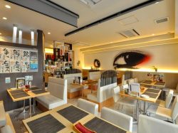 カジュアル&モダンな雰囲気で気軽に行ける「若鮨 甲府駅前店」。