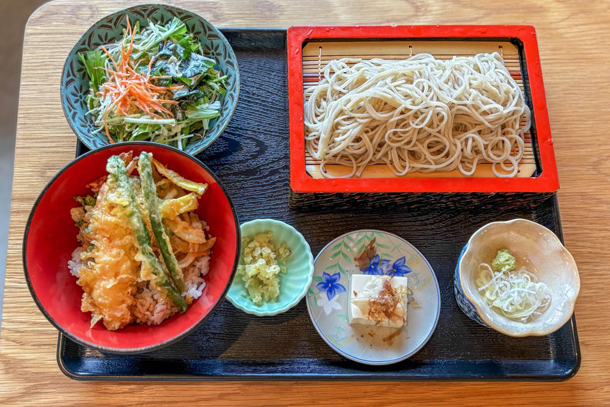 一番人気は天丼と二八蕎麦のセットメニュー。出汁がきいたあっさりめの天丼は、ボリューム満点ながらペロリと食べられそうだ。