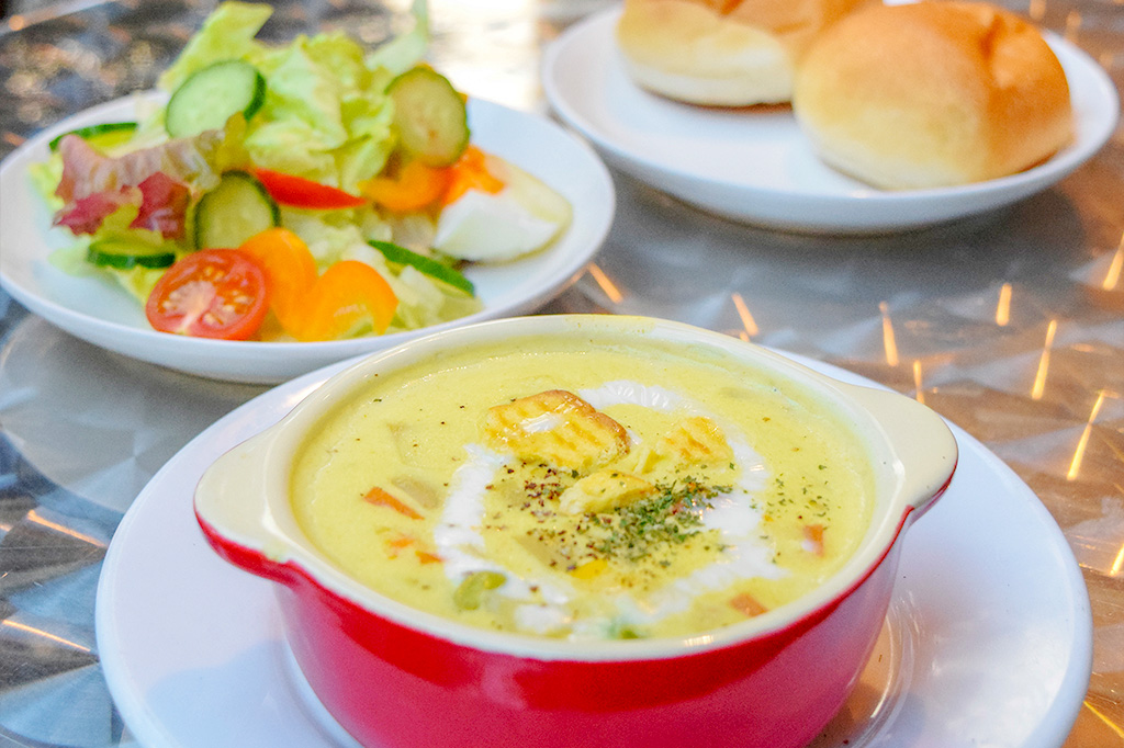 旬の食材や自家製野菜を使用したお料理は調味料をなるべく入れず、素材の味を楽しめる。新メニューのラクレットチーズ料理も大好評!