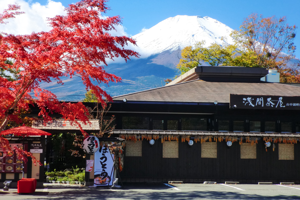 山中湖のほとりにある湖を見ながら山梨の名物ほうとうを味わえる人気のお店。