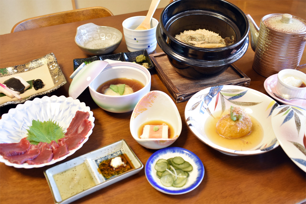 富士まぶしミニ懐石では馬刺や南瓜饅頭などの小鉢に、メインのニジマスの炊き込み御飯と、山梨の地産地消を満喫出来てオススメで...