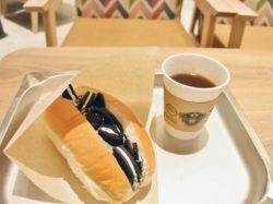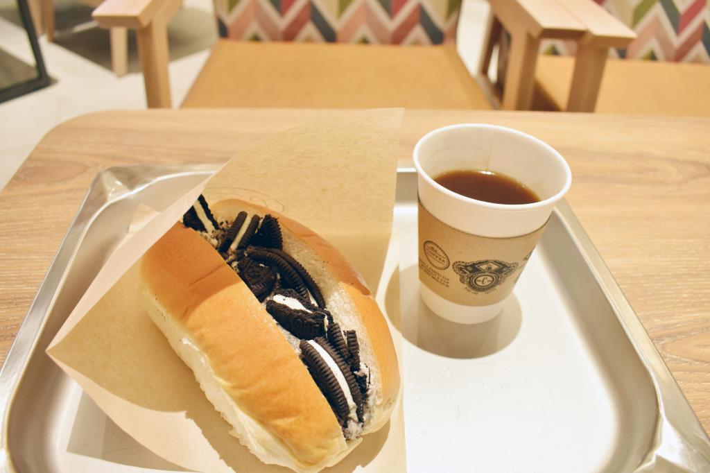 オレオが入ったコッペパンと、これまたオレオが入ったシェイクを食べました◎おいしかったですが、どうしてコッペパンなんだろう...