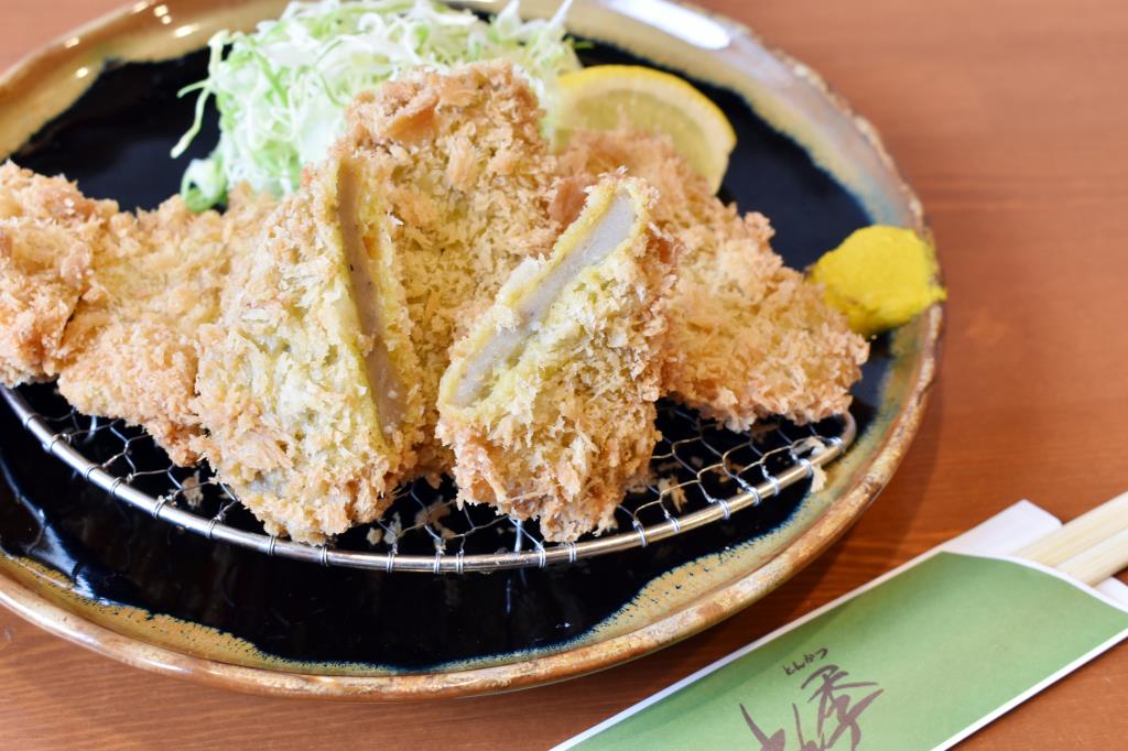 植物性とラードをブレンドした油で揚げる豚カツは衣がサクサク、県内産の豚肉は分厚くふんわり柔らかい♪