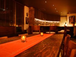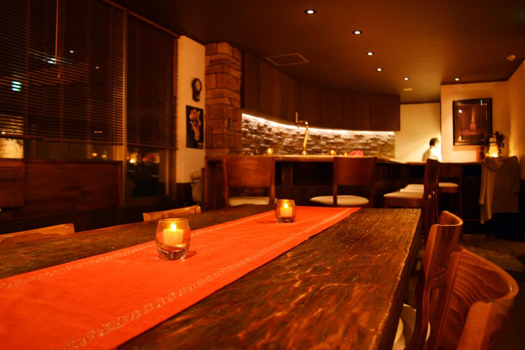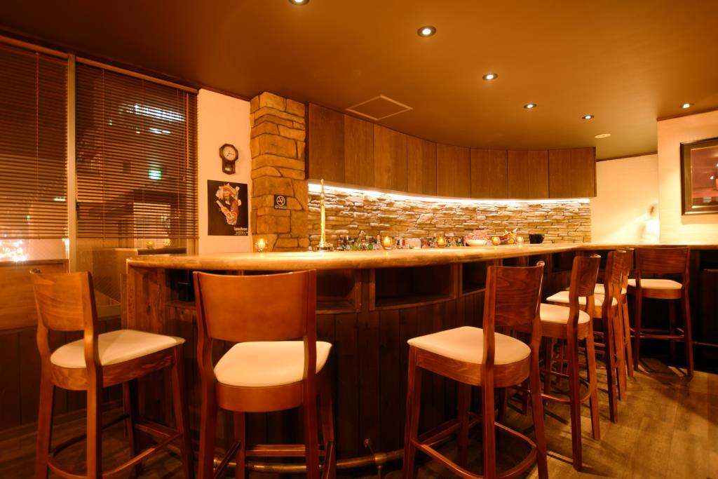 甲府市北口にあるダイニングバー「saiya」S字カウンターが特徴的な店内はオシャレで落ち着いた雰囲気。