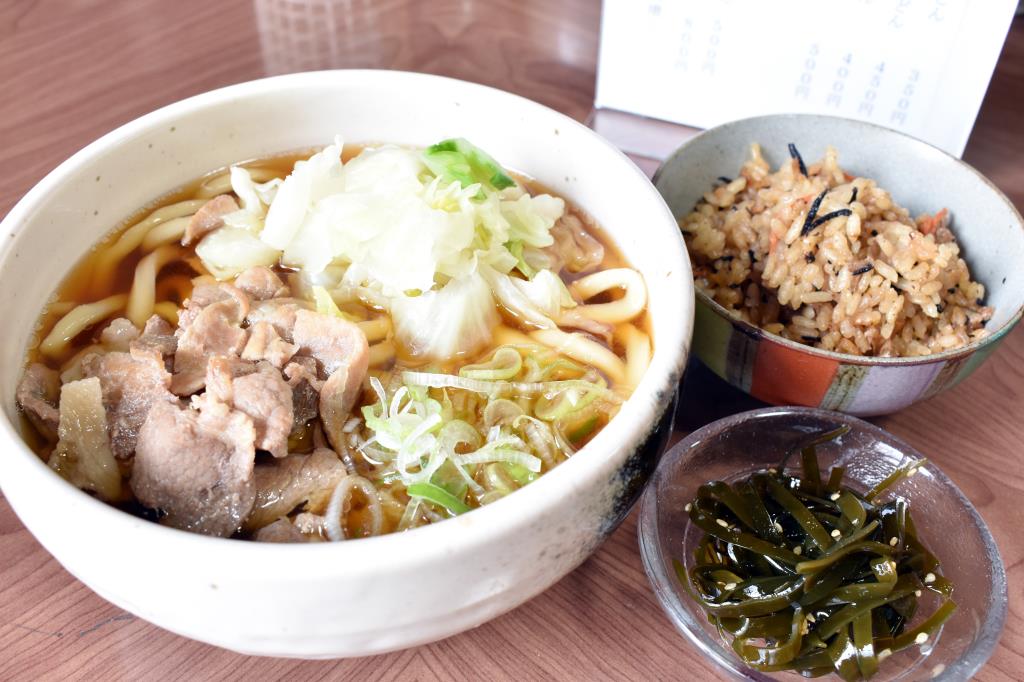隠れたうどんの名店を見つけ感動!うどんはコシのある細麺。好きなだけ食べられるばあちゃんの漬け物が最高に美味しい。