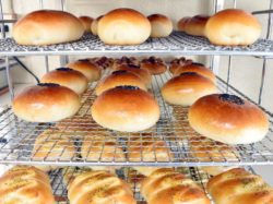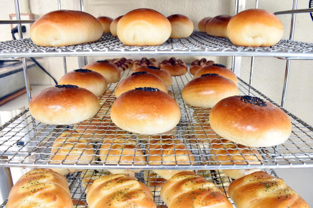 こちらで早朝からパンを製造し、全3店舗で販売している。