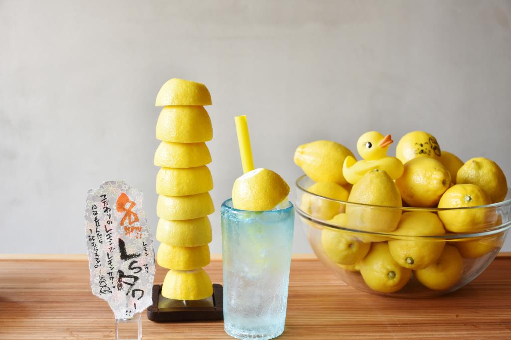 インパクト抜群のレモンサワータワーはレモンを10個積み上げると1杯サービス!