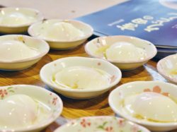 温玉が先着限定数で無料という太っ腹サービスも話題を呼んでいる。そのまま食べるもよし、うどんに入れて楽しむのもよし!