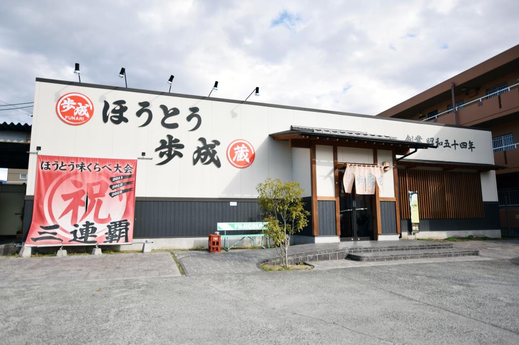 ほうとう専門店。秘伝の自家製黄金味噌、歩成ファーム産無農薬野菜、山梨ワイン豚、信玄どりをたっぷり使用したほうとうは、ほうとう味くらべ大会三連覇、殿堂の味。