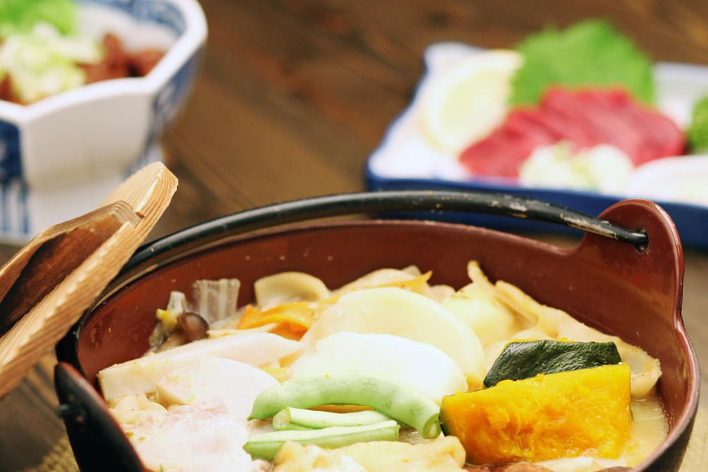 ・黄金ほうとう 1,300円 ・鳥もつ煮 500円 ・馬刺 600円 |