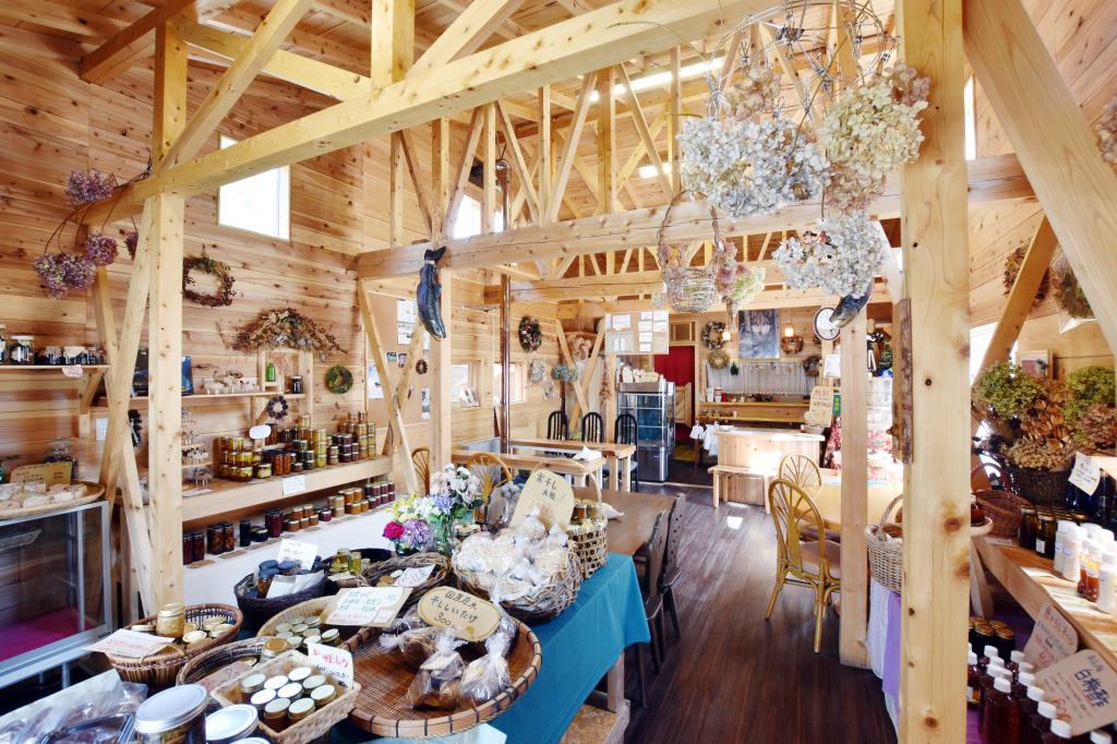 自然豊かなロケーションの中、その時期にしかないものをたくさん使った手作りのメニューが味わえる。