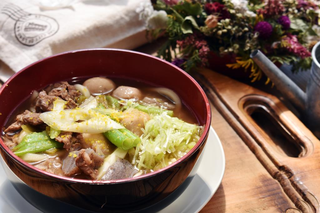 ・香辛みぞれ蕎麦 650円 <夏季限定> ・オリジナルフレッシュジュース 300円 ・桃のカキ氷 600円 <冬季限定> ・きのこのポタージュうどん 650円 |