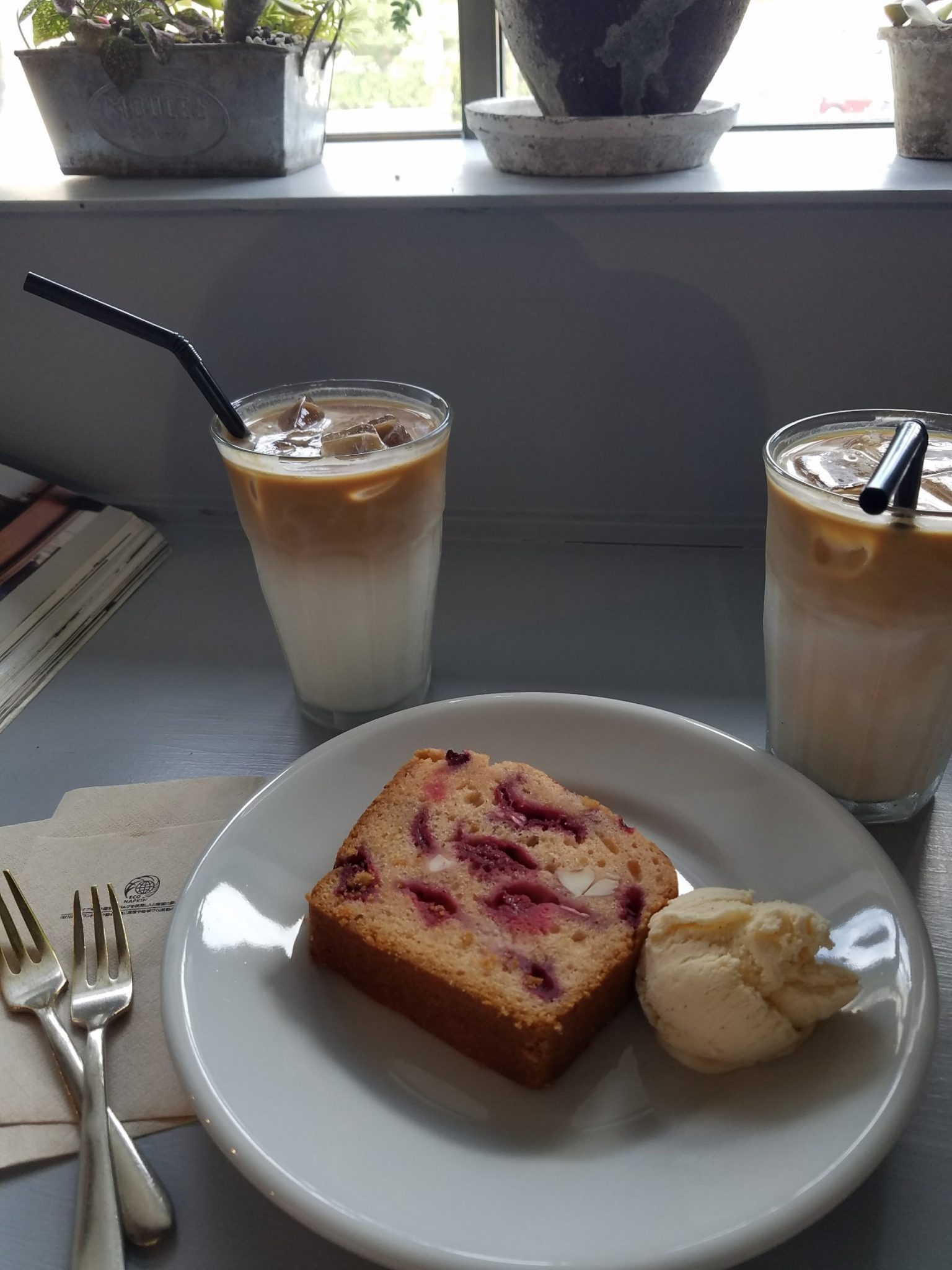 2階の席でまったりとコーヒーとパウンドケーキを^ ^パウンドケーキは店内で食べらとアイスのサービスもありました🎶