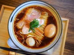 善屋善屋のスープは豚骨、鶏ガラ、煮干し、かつお節、昆布、エビ、野菜などを使用。あっさりだけど奥深い、旨さ... -