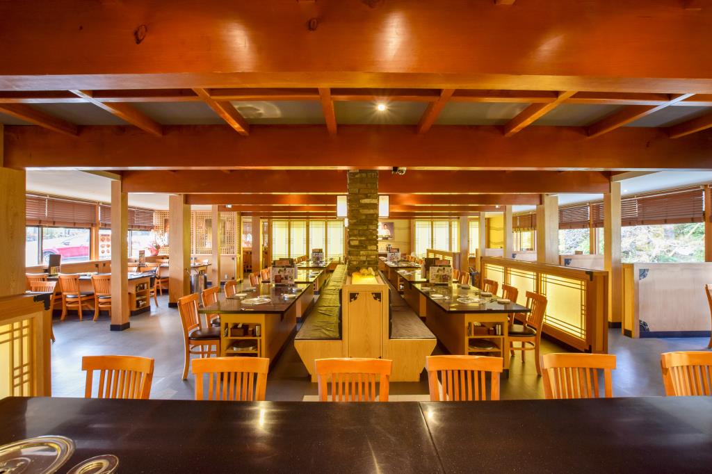 清潔感溢れる店内なので女性客も多く、大きな窓からは四季折々のきれいな庭園が見られる。