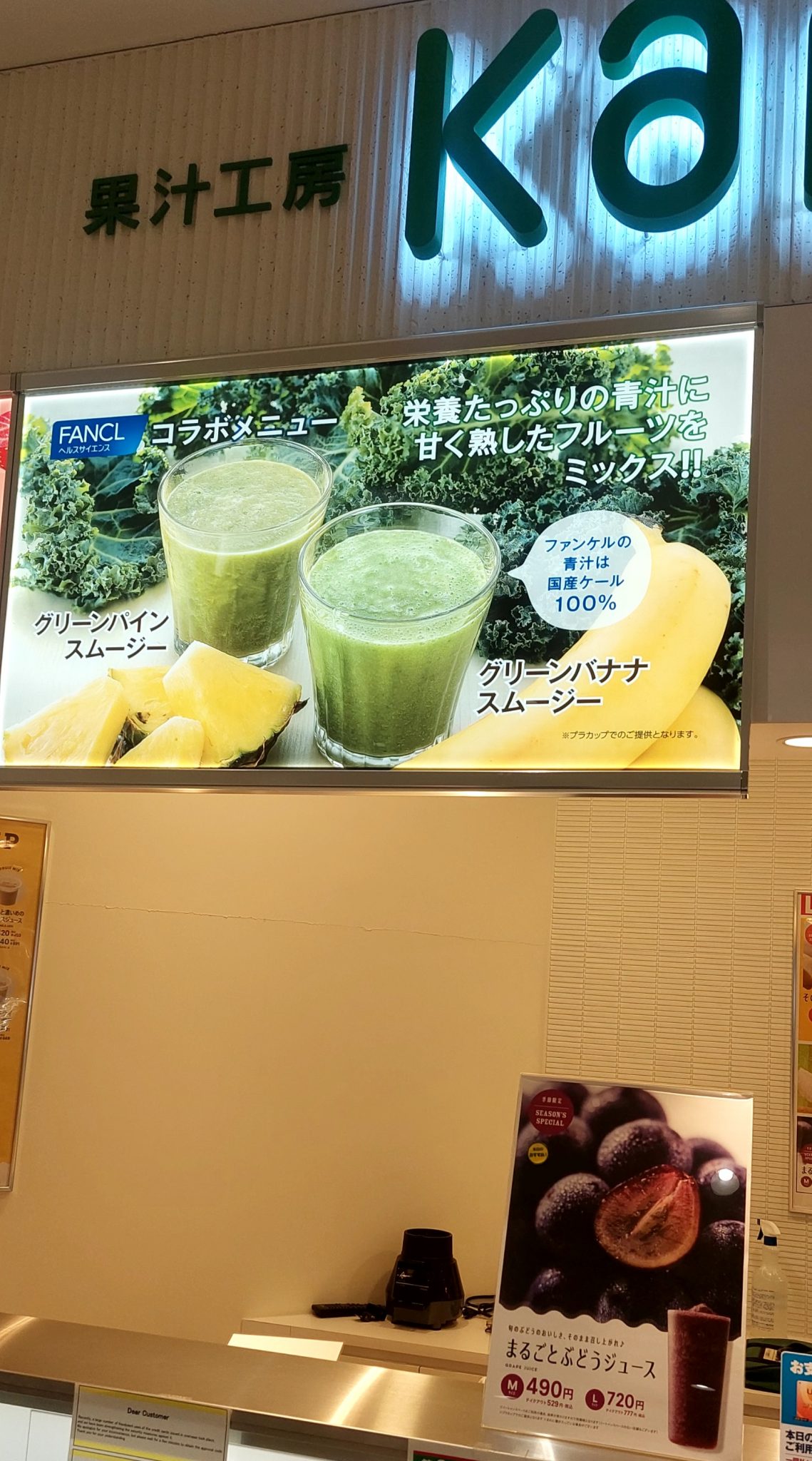 よくクーポンを配布していて、そんな時は行列ができています。少しお値段は高いですが、出来立てのフルーツジュースは贅沢感たっぷりです。