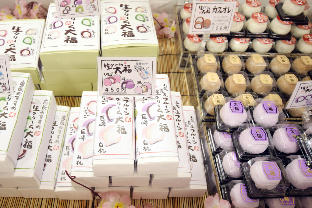 ・いちご大福 190円 ・甲州ころ柿 270円 ・かりんとう饅頭 110円 ・栗蒸し羊羹 750円 ・生クリーム大福 150円 ・おかげさまどらやき 150円 |