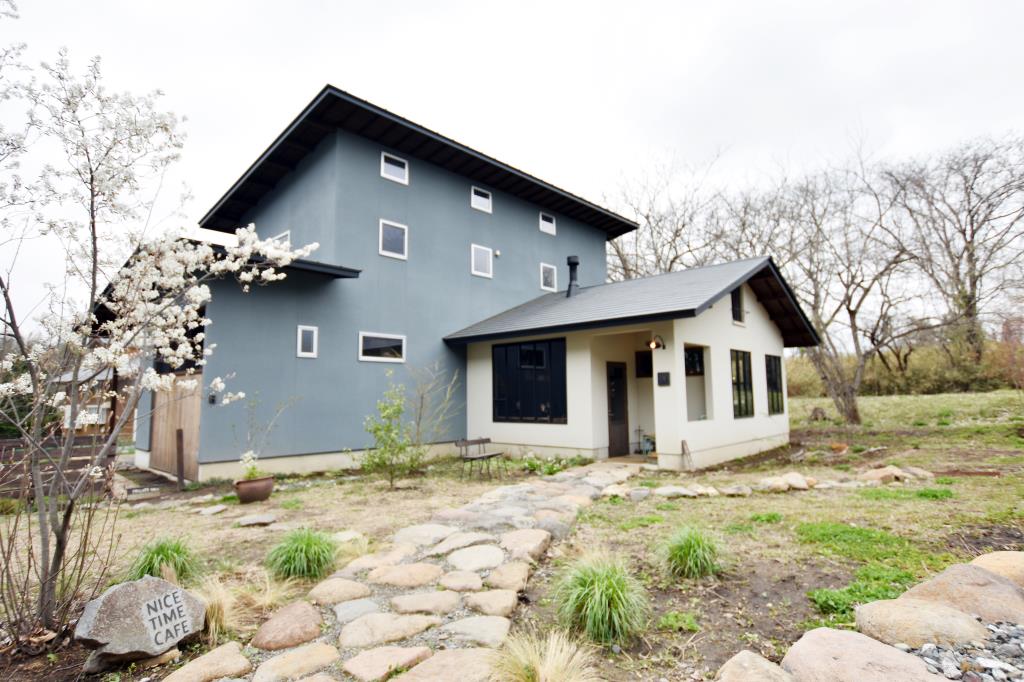 静かな森の中にしっくりとなじむ佇まいのNICE TIME CAFE。