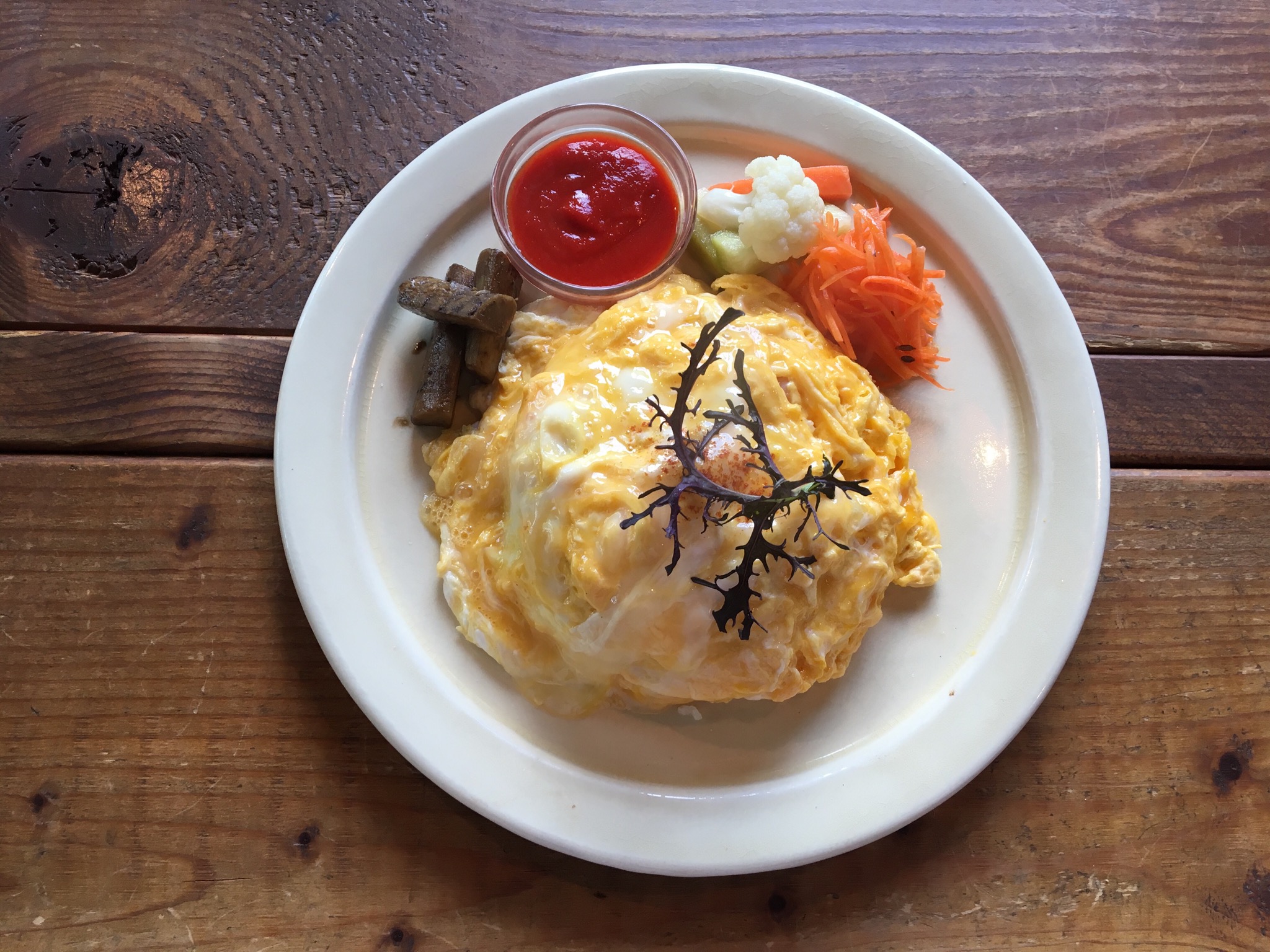 ・エビオムライス 900円 ・スパイスチャイ 550円 ・季節のケーキ |