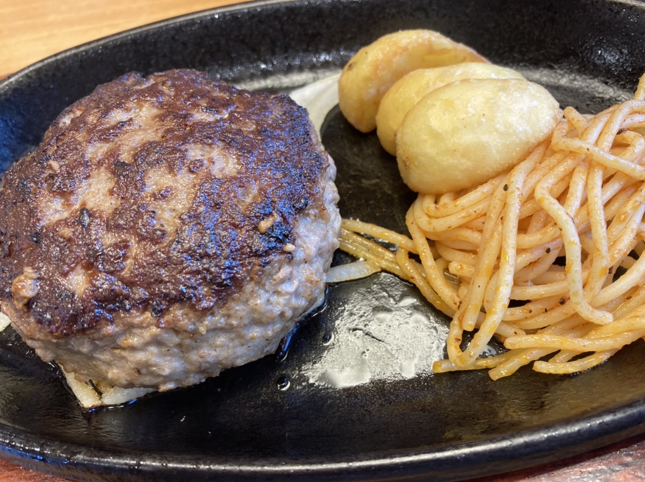 野菜がたくさん食べたいときに、サラダバーが非常にお得だと思います。種類豊富な野菜とドレッシングが美味しいです。メイン料理はハンバーグ&メンチカツに、目玉焼きをトッピングしました。ジューシーなハンバーグとメンチカツが美味しかったです。