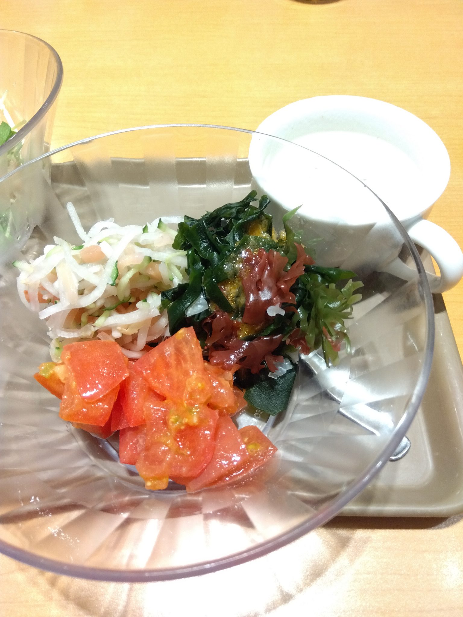 サラダバーの野菜、ドレッシングが豊富なのと、パスタやゼリーもあって色々楽しめます。